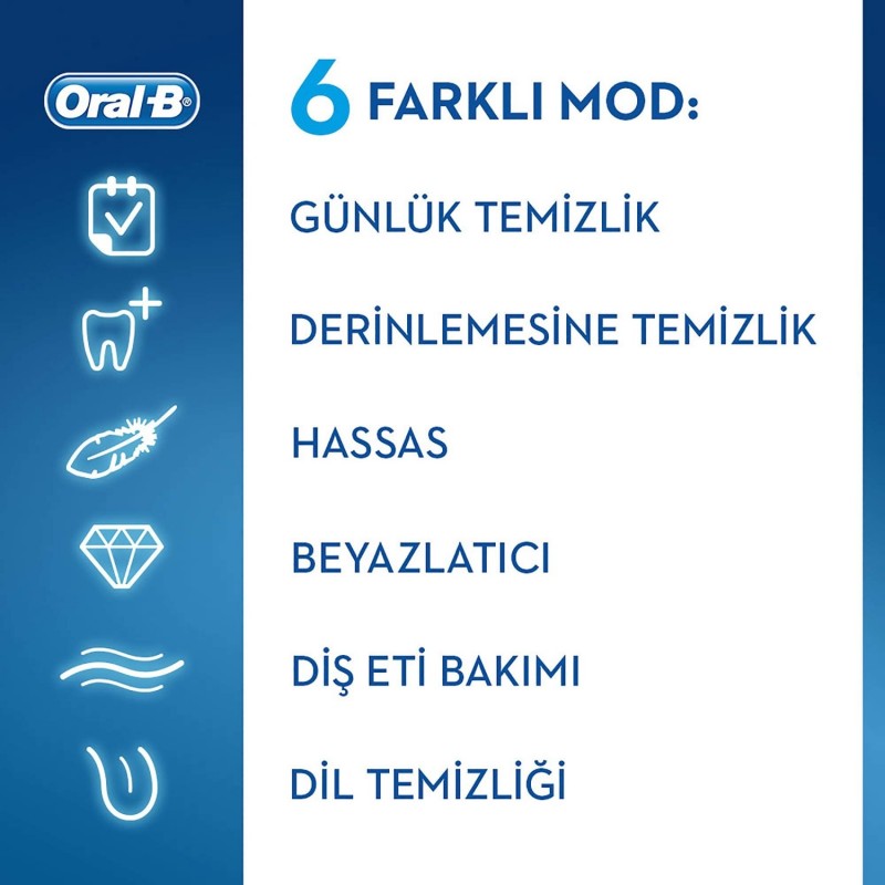 مسواک برقی اورال-بی مدل Genius Xدارای 6 حالت شستشو برای محافظت از بهداشت دهان و دندان شما هست که عبارت است: