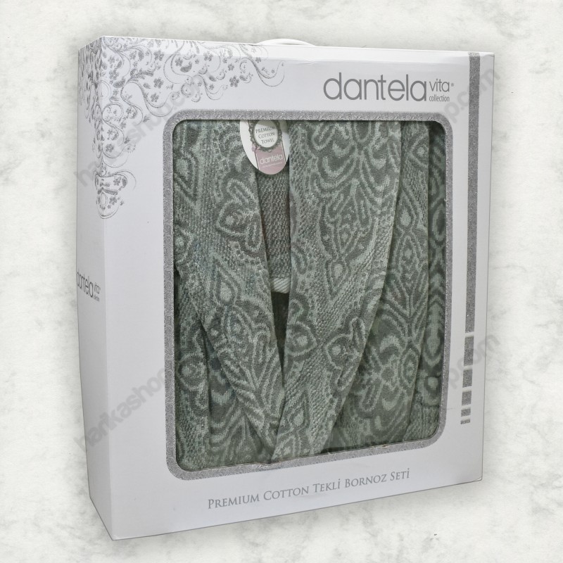 توضیحات حوله تن پوش  ترک دانتلا طرح داماسک سبز