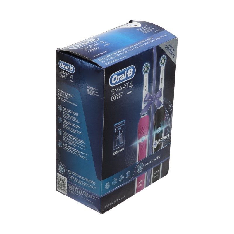 مسواک برقی اورال بی smar4 مدل ۴۹۰۰ آن دارای ۲ عدد بدنه می باشد و خصوصیاتی دارد که باعث می شود شما محافظت از دندانهای خود را مدیریت کنید بدین صورت که این مسواک با قابلیت بلوتوث خود به اپلیکیشن اورال بی نصب شده روی موبایل شما وصل می شود و شما می توانید چگونگی مسواک زدن خود را محافظت کنید بدین گونه که هر چهار ربع دندانهای خود را به اندازه مسواک بزنید و همینطور به شما آماری ارائه می دهد که می توانید روش مسواک زدن خود را بر اساس آمار ارائه داده شده مدیریت کنید.