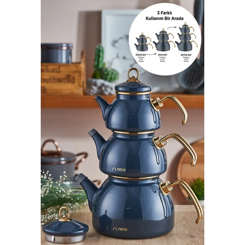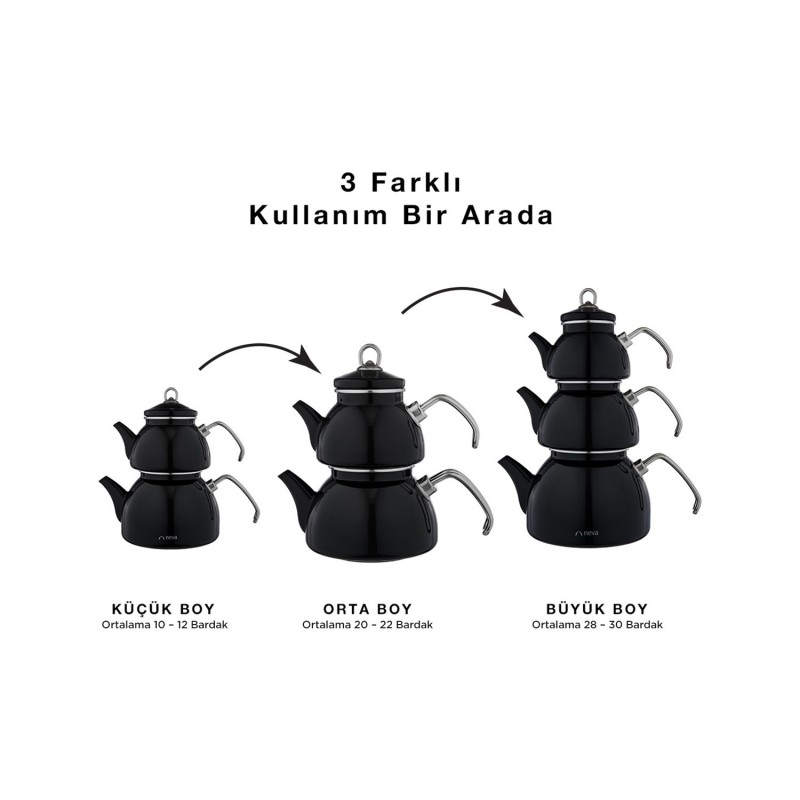 Neva NV10021 Black Enamel 3 Layer Teapot Set