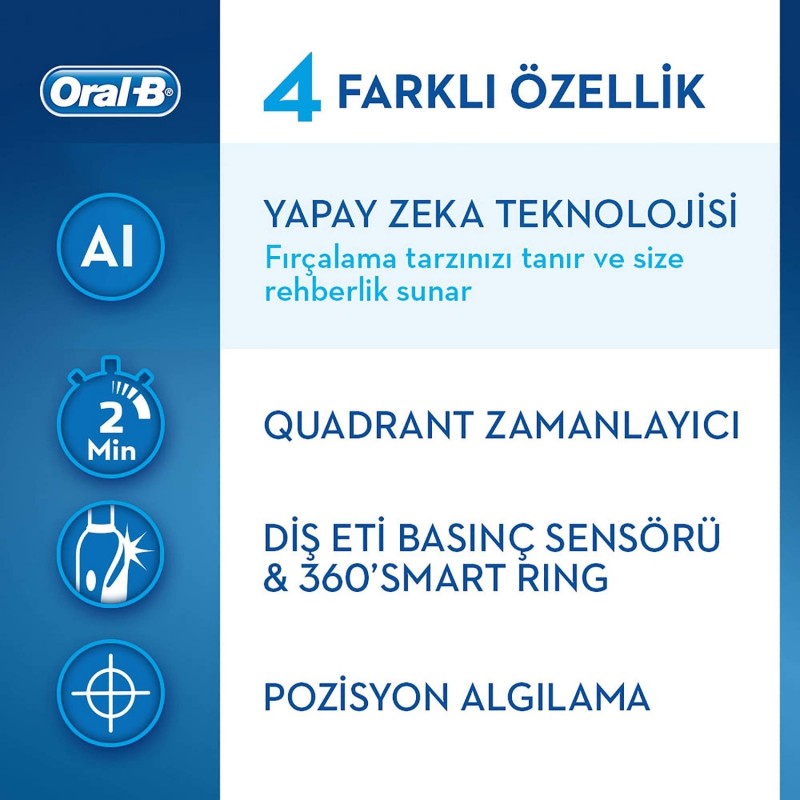 در ان مسواک برقی،با استفاده از هوش مصنوعی مسواک رفتار شما را در مسواک زدن تشخیص داده و به شما در مورد اصلاح روش مسواک زدن کمک می کند.به زبان ساده تر بخش های از دندان را مسواک نکشیده اید با دقت بالا به شما اعلام می کند و به صورت هوشمند فشاروارده شما بر لثه را کنترل می کند.