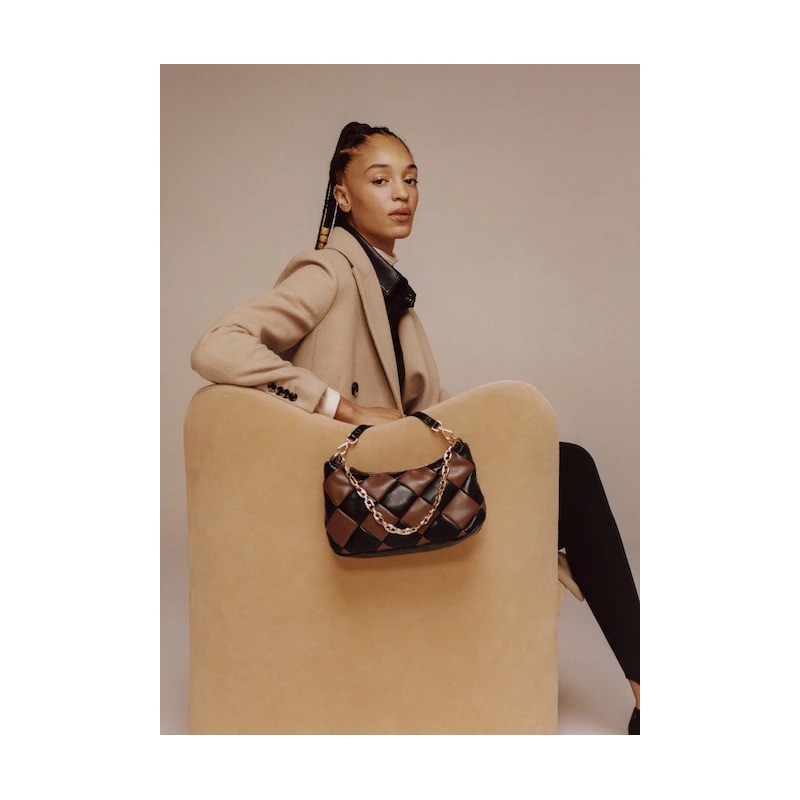 کیف دوشی زنانه مانگو مدل چرم دوخت لوزی زیپ دار
