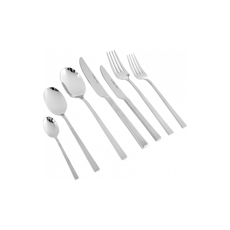 سرویس قاشق و چنگال 84 پارچه کاراجا مدل Karaca Adriatic شامل 12 قاشق غذا خوری به طول 20 سانتی متر،12 چنگال غذا خوری به طول 20.3 سانتی متر،12 کارد غذا خوری به طول 23 سانتی متر،12 قاشق دسر به طول 17 سانتی متر،12 چنگال دسر به طول 18 سانتی متر،12 کارد دسر به طول 19.5 سانتی متر و 12 قاشق چای خوری به طول 11.5 سانتی متر می باشد.تمامی این اقلام در یک کنسول چوبی زیبا و کم حجم با ظرافت در کنار هم چیده شده اند.