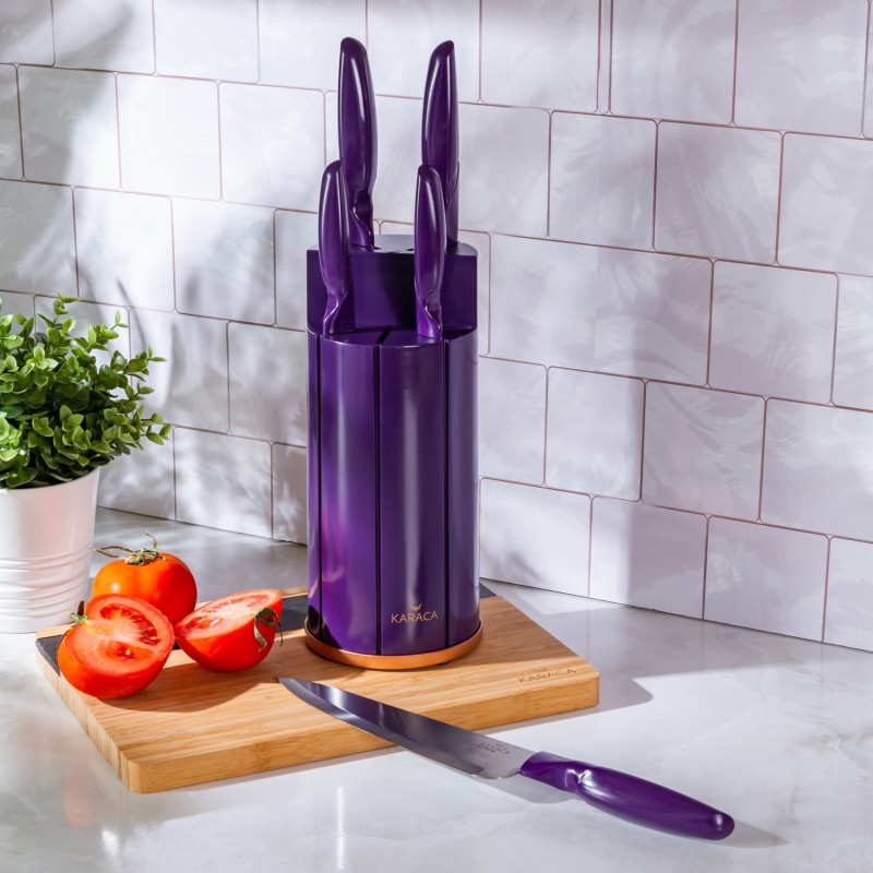 ست چاقوی آشپزخانه 6 پارچه کاراجا مدل Karaca Retro بنفش