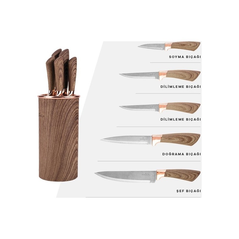 خرید ست چاقوی آشپزخانه 6 پارچه کاراجا مدل Karaca Wave Green قهوه ای