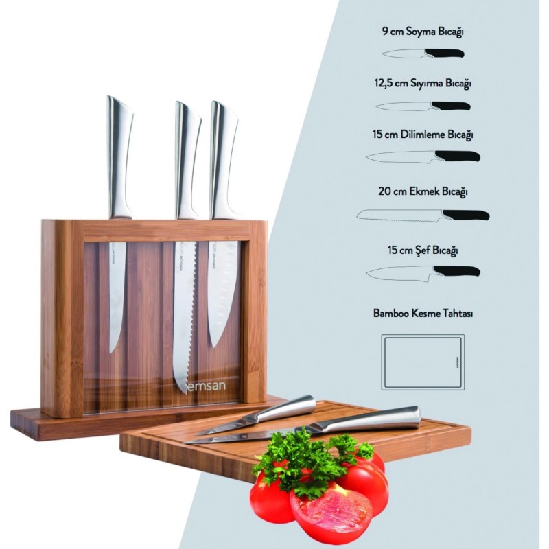 Emsan Matriks 7 Piece Snd Cutting Board Knife Set Stainless