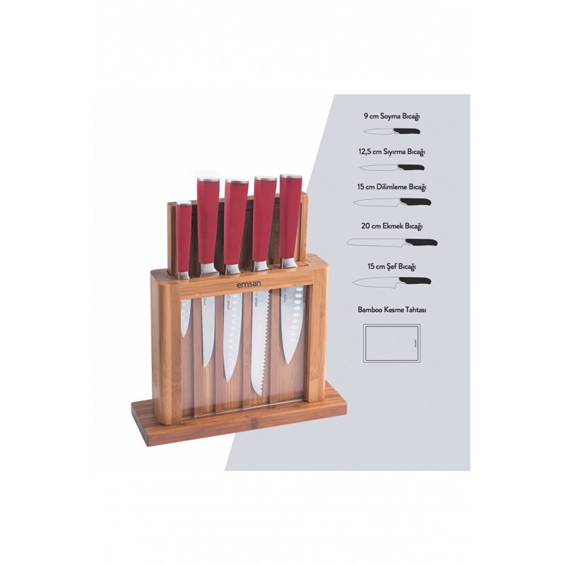 ست چاقوی آشپزخانه 7 پارچه امسان مدل Emsan Matriks Kirmizi