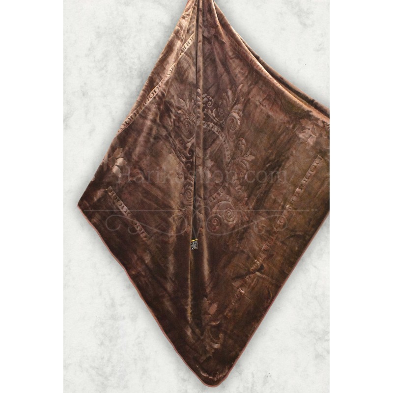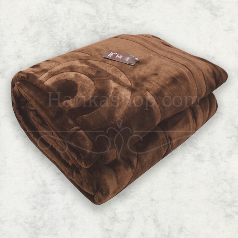 پتوی دونفره ترک آکرولیک درمینا رنگ قهوه ای برجسته سایز 220x240 سانتیمتر
