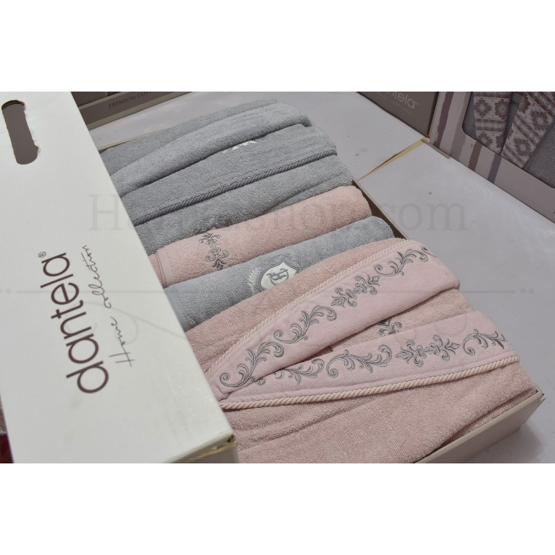 سرویس حوله های دانتلا به خاطر جنس و کیفیت بسیار بالای آن در بازار شناخته میشود جنس تشکیل دهنده این نوع سرویس حوله ها ۱۰۰ درصد پنبه اعلا می باشد لازم به ذکر است که الیاف پنبه تولید شده در این سرویس حوله از پنبه بسیار با کیفیت ساخته شده است که تفاوت قابل توجهی نسبت به دیگر پنبه ها دارد جنس پارچه این نوع سرویس حوله پالتویی دانتلا به خاطر ساختار و ویژگی که دارد بسیار لطیف و نرم است و آبگیری فوق العاده ای دارد.