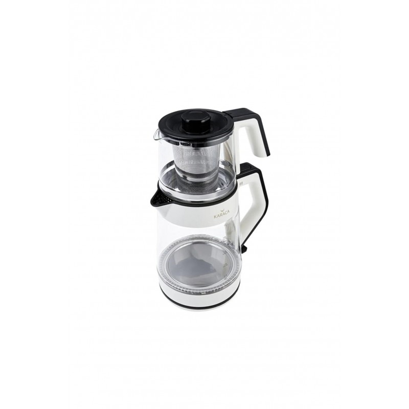یکی از ویژگی های خوب چایساز کاراجا Cam کرم - KARACA، طراحی فوق العاده خاص آن بصورت شیشه ای است که به هنگام جوش آمدن آب داخل آن قابل مشاهده است. ظرفیت قوری سماور 1 لیتر و ظرفیت کتری2 لیتر می باشد؛فیلتر چای داخل قوری از جنس استیل ضد زنگ است.