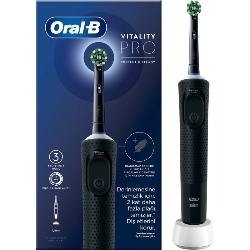 مسواک برقی اورال-بی مدل Vitality Pro Protect X Clean را از برند شماره 1 دنیا که مورد استفاده دندانپزشکان در سراسر جهان هست را تجربه کنید. بدنه شیک مسواک برقی vitality pro به شما امکان می دهد همانطور که دندانپزشک توصیه می کند دندان های خود را مسواک بزنید.