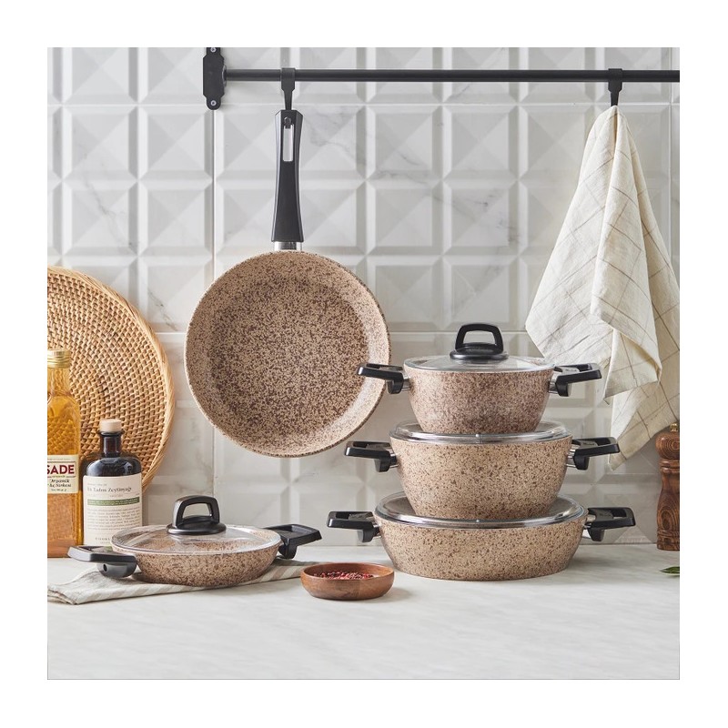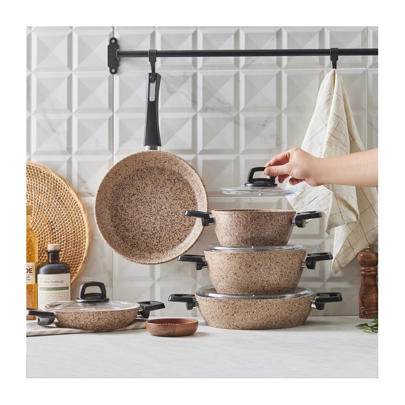 Karaca Bio Granit Wood Stone 9 Piece Cookware Set