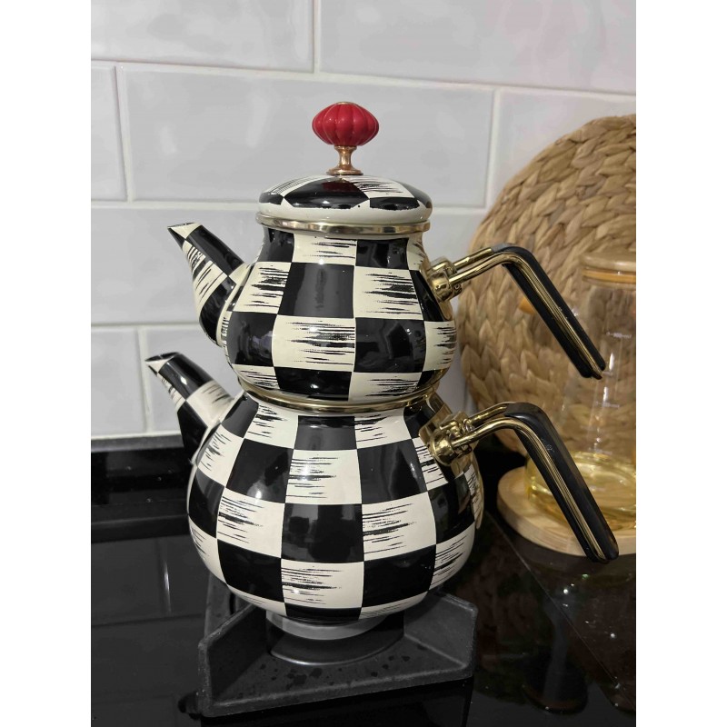 ACAR Qualita King Tombul Emaye Çaydanlık Dama Dekor