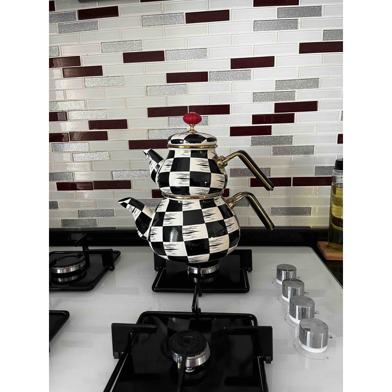ست کتری و قوری لعابی آجار مدل شطرنجی Qualita King tombul