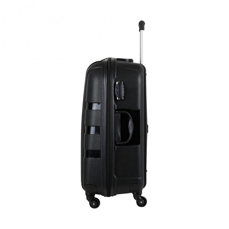 چمدان سایز متوسط IVS ترکیه رنگ سیاه دارای دو دسته است که یکی در قسمت بالایی چمدان می باشد و دیگری در قسمت کناری چمدان می باشد ، دسته بالایی بر روی یک میله تلسکوپی قرار دارد که قابلیت تنظیم ارتفاع نیز دارد و به راحتی با تنظظیم ارتفاع دسته به اندازه خودتان ، حمل و نقل چمدان خیلی راحت تر میشود.