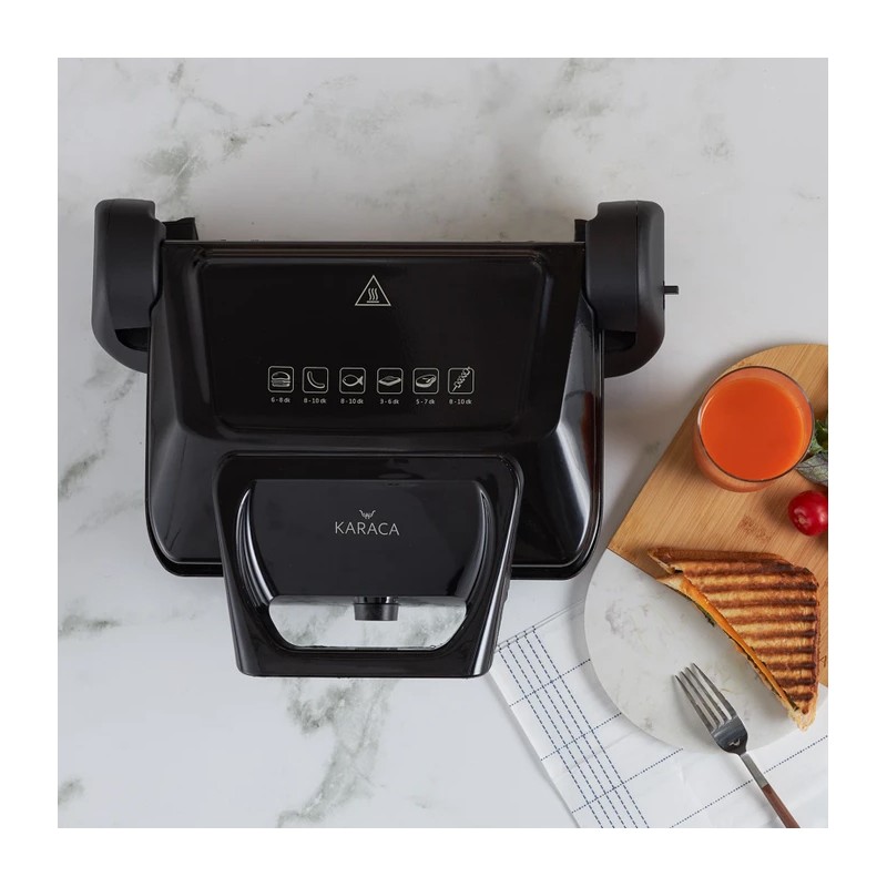 این دستگاه دارای دو تاج گرمایشی بالا و پایین است که باعث میشوند حرارت به صورت یکنواخت در ساندویچها یا مواد غذایی شما منتقل شود و به راحتی آنها را پخت کند. همچنین، مجهز به لمسی الکترونیکی است که به شما امکان میدهد درجه حرارت را به طور دقیق تنظیم کنید و دما را متناسب هر غذایی تنظیم کنید.