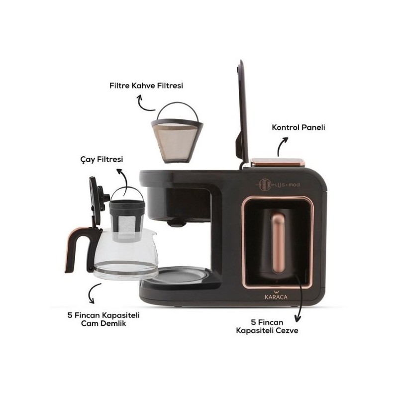 قهوه یکی از خوشمزه ترین و خوش عطرترین نوشیدنی های محبوب و رایج دنیا است که علاوه بر خوش عطر و طعم بودن آن بسیار نشاط آور است.قهوه سازکاراجا مدل Hatır Plus 2 in 1 رنگ رزگلد با توان مصرفی 1400 وات ، امکان آماده کردن حداکثر 5 فنجان قهوه ترک و یا 5 فنجان قهوه فیلتر شده را دارد. البته میتوانید هم زمان برای 10 نفر قهوه آماده کنید که 5 تای آن قهوه ترک و 5 تای دیگر قهوه فیلتر شده باشد و یا اینکه میتوانید فقط قهوه ترک و یا فقط قهوه فیلتر شده درست کنید.قهوه سازکاراجا مدل Hatır Plus 2 in 1 رنگ رزگلد دارای مخزن 300 میلی لیتری قهوه ترک و 300 میلی لیتری قهوه فیلتر شده به صورت جداگانه است. . به لطف قابلیت حفظ دمای قهوه فیلتر شده به مدت نیم ساعت قهوه گرم بنوشید و به دیگران سرویس دهید.این قهوه ساز دارای فیلتر استیل ضد زنگ و قاشق مخصوص اندازه گیری قهوه است.تمام قطعات قابلیت جدا شدن و شستشو دارند.لطفا برای حفظ کیفیت قطعات آنها را با دست شستشو دهید.
