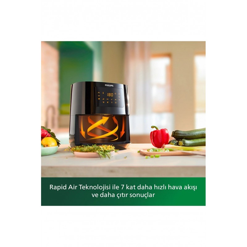 یکی از ویژگی های بارز این سرخ کن بادی، فناوری Rapid Air آن است که هوای گرم را در اطراف غذا به گردش در می آورد تا به طور یکنواخت و سریع پخته شود. نتیجه غذای ترد با روغن کم یا بدون نیاز است. سرخ کن همچنین دارای یک کشو با روکش نچسب جداشدنی و سبد غذایی است که برای تمیز کردن آسان در ماشین ظرفشویی قابل شستشو هستند.