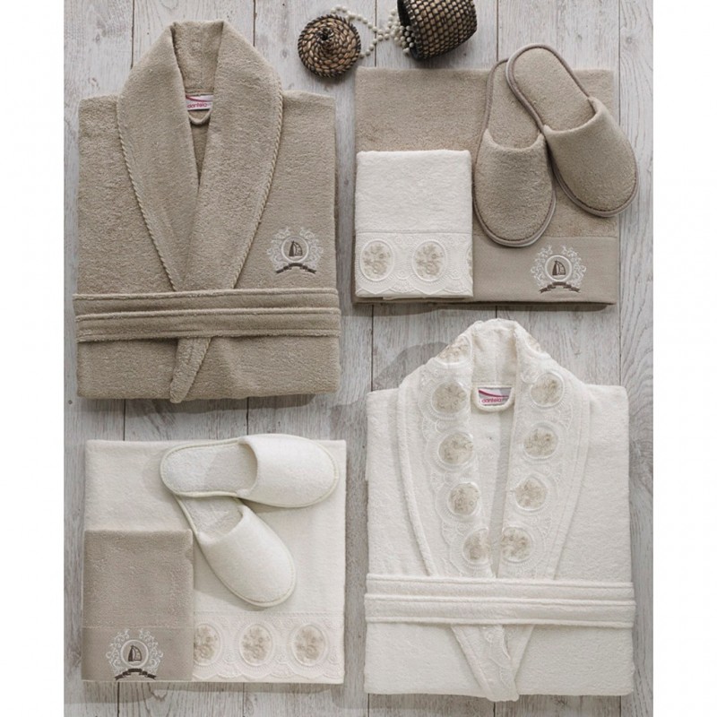 مشخصات ست حوله حمام پالتویی زوج دانتلا سری بامبو 8 تکه طرح برلی berli کد2