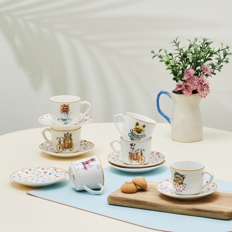 Karaca Dog Coffee Cup Set for 6 Persons 80 ml