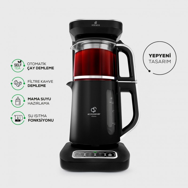 چایساز و قهوه ساز سخنگو کاراجا مدل Çaysever Robotea Pro،چای شما را در 15 دقیقه با استفاده از روش تقطیر تضمین شده طعم دم می کند و تضمین می کند که چای با طعم کامل و بدون سوختن برگ های چای دم می شود.چای شما که رنگ و طعم ایده آلی در دمای 90 درجه دارد، به مدت 60 دقیقه تازه می ماند. علاوه بر این، می توانید با نشانگر نوری که وضعیت تازگی را نشان می دهد، تازگی چای خود را دنبال کنید.