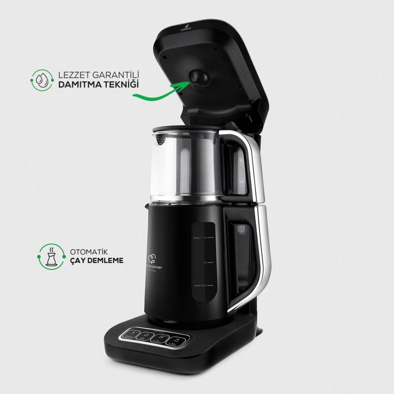 با ویژگی گرم نگه داشتن خودکار خود، چای، قهوه و آب شما را در تمام مدت لذت بردن از چای یا قهوه گرم نگه می دارد. ظرفیت اندازه خانواده به لطف قوری شیشه ای با ظرفیت 0.8 لیتر و مخزن آب با ظرفیت1.8 لیتر می توانید در کنار خانواده و مهمانان خود از چای نوش جان کنید.