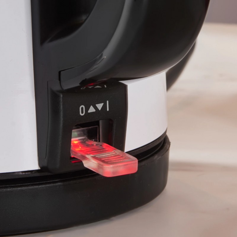 شما می توانید وضعیت جوش و گرم نگه داشتن آن را با چراغ وضعیت روی دکمه روشن روی کتری کنترل کنید. نور قرمز نشان دهنده حالت جوش و نور آبی نشان دهنده حالت گرم نگه داشتن است.