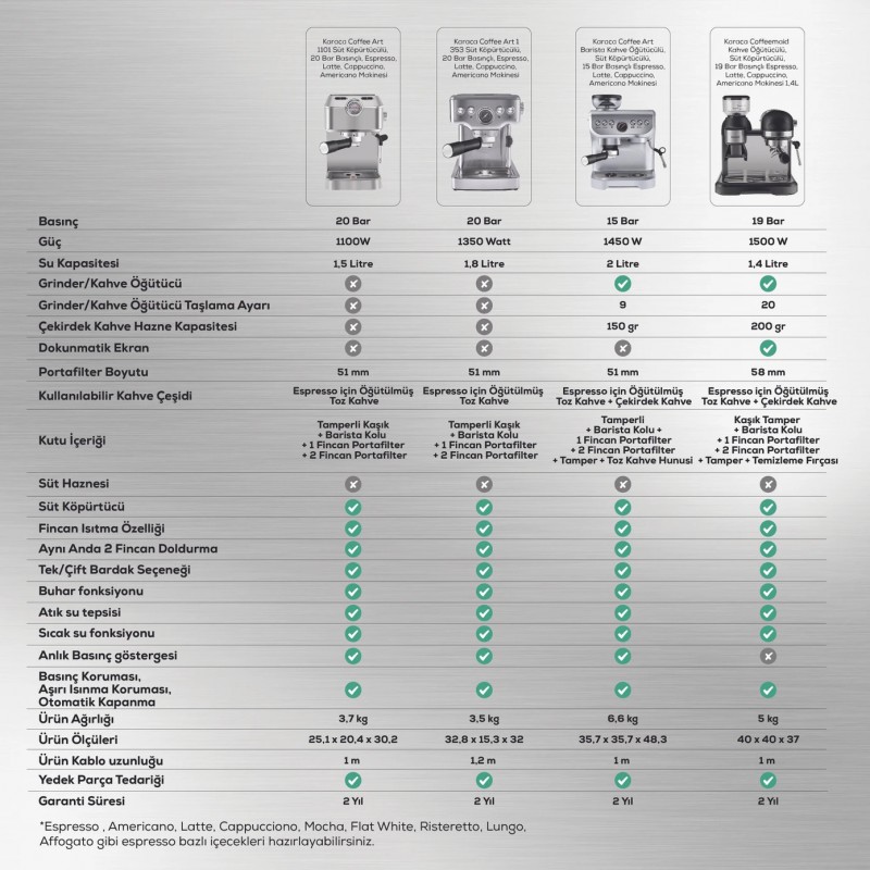 - مناسب برای اسپرسو ، لاته ، کاپوچینو ، کورتادو ، فلت وایت ، آمریکانو ، ماکیاتو ، لانگو ، آفوگاتو آیس لاته ، آیس آمریکانو ، کاپوچینو