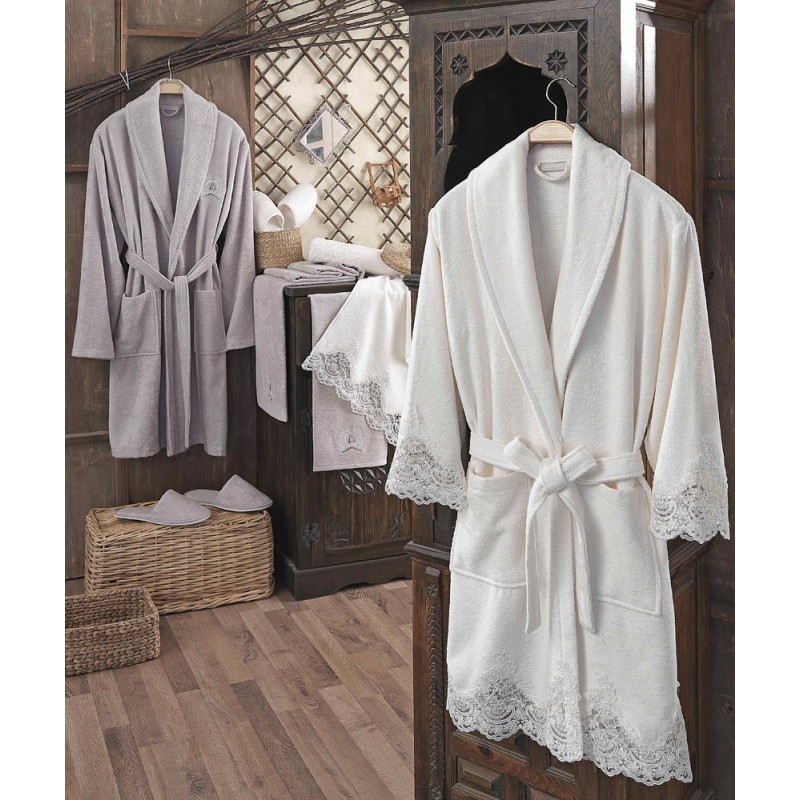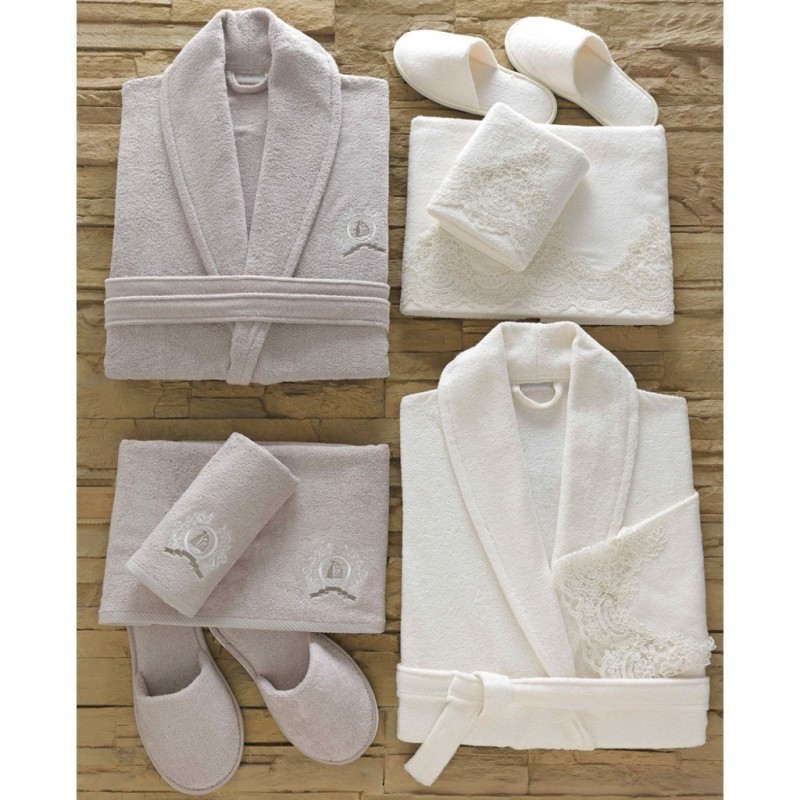 ست حوله حمام پالتویی زوج دانتلا سری بامبو 8 تکه مدل دانته (گیپور) (dante) شامل :