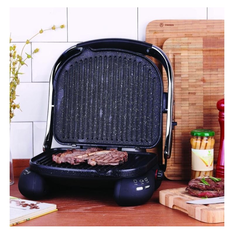ساخت کشور ترکیه جنس سینی :گرانیتی PTFE صفحات قابلیت جدا شدن و شستشو را دارند قابلیت تنظیم ارتفاع دارد دارای ویژگی گریل قدرت:1800وات ظرفیت 6 نان تست مخزن جمع آوری روغن:دارد