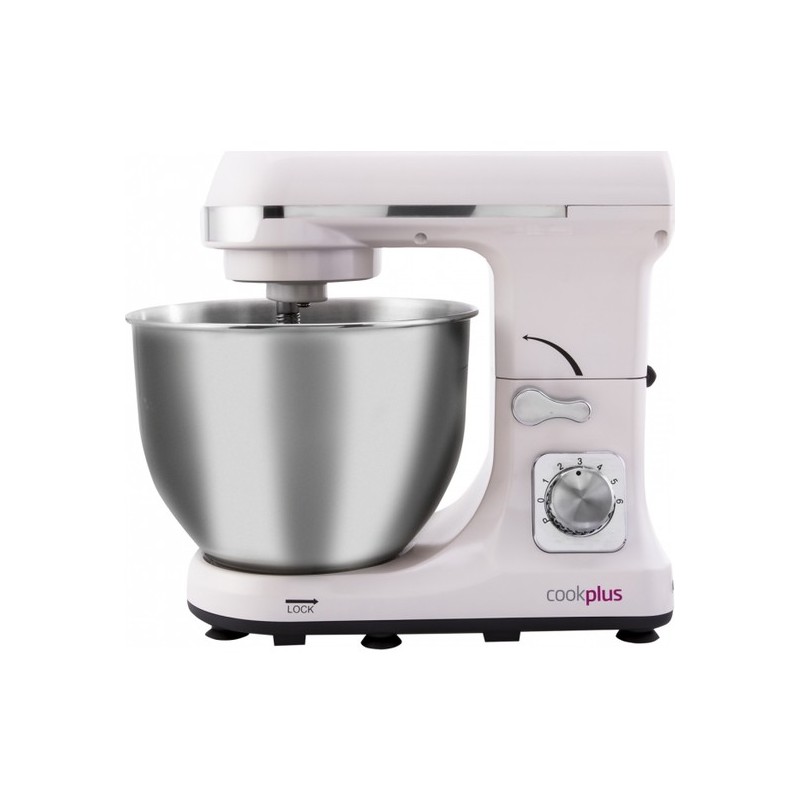 همزن برقی کوک پلاس مدل QUICK CHEF 1001 یک دستگاه قوی برای مخلوط کردن مواد است که باقدرت زیاد و استفاده از یک پره بسیار بزرگ و قوی این کار را انجام میدهد . این مدل دارای یک ظرف در حدود چهار لیتر است که از جنس استیل ضد زنگ بوده و امکان تهیهی مخلوط با حجم زیاد را به کاربر میدهد . همزن کوک پلاس (cook plus) کارایی بالایی دارد و علاوهبر مصارف خانگی میتواند در آشپزخانههای تجاری کوچک مانند کافیشاپها نیز استفاده شود . این مدل با داشتن شش سرعت میتواند مخلوطهای مختلفی تهیه کند. تنها با یک دکمه، قسمت همزن بلند شده و کاسه و مخلوطکن آزاد میشود. بدنهی این محصول پلاستیکی مقاوم بوده و قسمتهایی از آن استیل ضدزنگ است. پایههای ضد لغزش باعث میشود دستگاه حین فعالیت ثابت باشد و تکان نخورد .