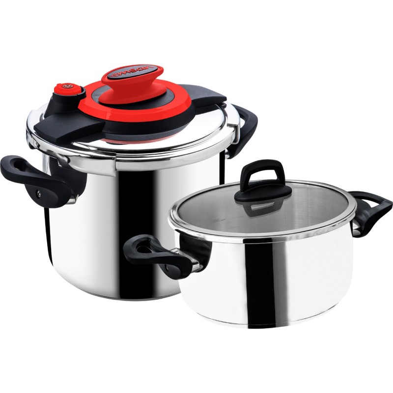 این ست با ترکیب رنگ سیاه و قرمز زیبایی شیک و کلاسیکی دارد که نگاه هر خریداری را به خود جلب می کند . این محصول جدا از زیبایی چشم نوازی که دارد بسیار کاربردی و با دوام است . با خرید این ست پر کاربرد هم زمان چهار محصول خریداری می کنید . با ولم تنظیم پخت و پز می توانید فشار پخت و پز را تنظیم کنید . وقتی حرف از زود پز به میان می آید حتما امنیت آن محصول نیز باید ظمانت شده باشد ، با خرید این محصول با اطمینان و تند و سریع غذاهای مورد علاقه خود و خانواده خود را آماده کنید .