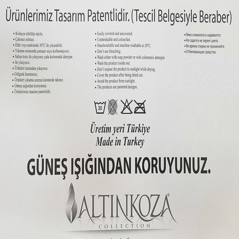 یکی از ویژگی های کاور صندلی نهار خوری ترک آلتین کوزا طرح و رنگ های منحصر به فرد آن است طرح کاور صندلی آلتین کوزا به صورت بافت لانه زنبوری برجسته طراحی شده است تا جذابیت خاصی را به ظاهر آن داده شود امروزه بیشتر کاور صندلی های موجود در بازار با ظاهری ساده و بی روح به بازار عرضه میشود کاور صندلی غذاخوری آلتین کوزا با استفاده از تکنیک بافت پیشرفته با طرح های متفاوت و رنگهای ملایم این مشکل را برطرف نموده است به همین دلیل این برند به یکی از پرطرفدار ترین برندهای موجود در بازار تبدیل شده است