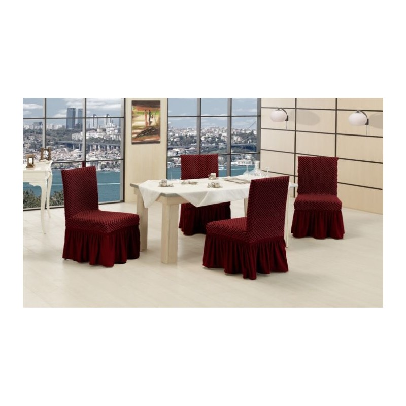 کاور صندلی غذاخوری التین کوزا رنگ زرشکی برای صندلی های راحتی میز غذاخوری بدون تاچ بلند بهترین گزینه است اما برای صندلی های با فرم ها و ترکیب های نامتعارف گزینه مناسبی نیست .